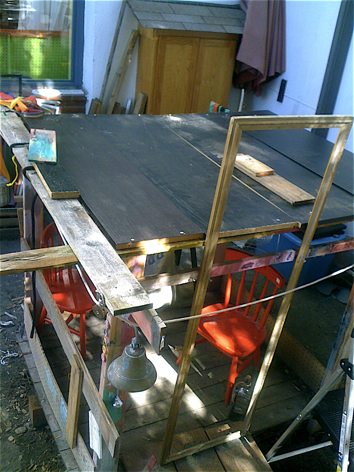 Late last spring, one of the guys had the idea of installing a doorway, using an old mirror frame for the purpose.