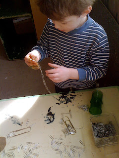 Some things are so everyday, commonplace to us that we forget how magical they are for children. And, when you don't understand what something's intended use is, you are freed up to use it in new, unexpected ways. Hurrah for paperclips!