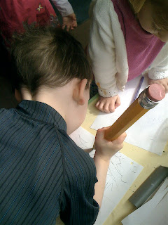 During the past few weeks we've painted with pendulums, made tall paintings, and painted a box city. We toured a chocolate factory, had big kid visitors, and got to shoot a real fire hose connected to a hydrant. But nothing has captured the kids sustained interest quite like our office supplies. Sheesh!