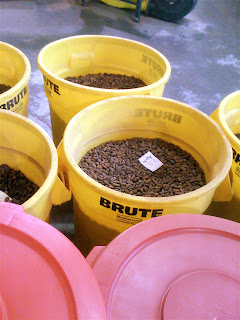 One of the first things we learned was that the reason you won't be finding any hairs in your Theo Chocolate is that everyone who enters the factory must tuck their hair into these blue hair nets. Teacher Tom even wore a beard net! (Photo may or may not be forthcoming.)