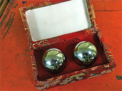 Two boys were playing in the top of our loft. I have no idea what they were playing, but each of them was holding one of our classroom baoding balls, which I've written about before. What I haven't shared, and what I've only discovered within the last couple of months is that we, in fact, have three of these balls, an extra one having appeared from who knows where. It's a fact that may have eluded me for weeks, but one of which the children have long been aware seeing that these shiny, metal balls with the gentle chimes inside are valued loose parts.
