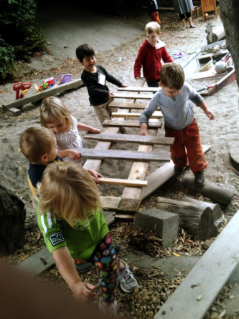 When we moved to our current location some six years ago, the nesting play didn't move with us. Although the physical layout of the classroom, including the loft and other furniture, remained virtually the same, the children simply stopped doing it. Sure, there were still times when kids would make big piles of random materials, but it never took on the day-after-day regularity that it had in previous eras. And honestly, I've not really thought about it since: good riddance and all that, I suppose.