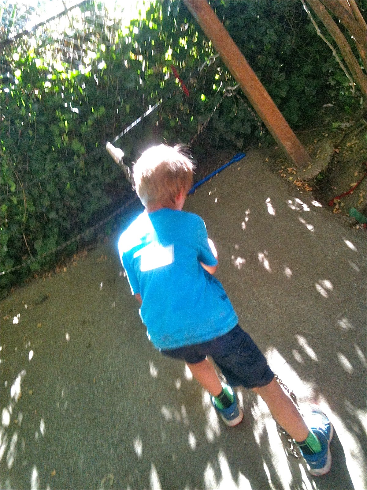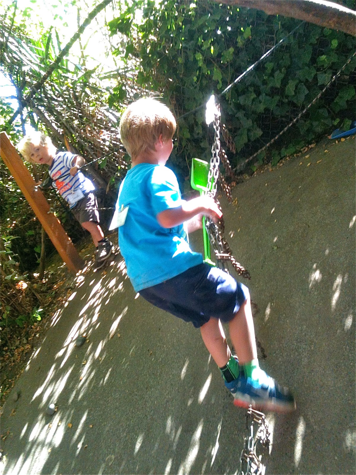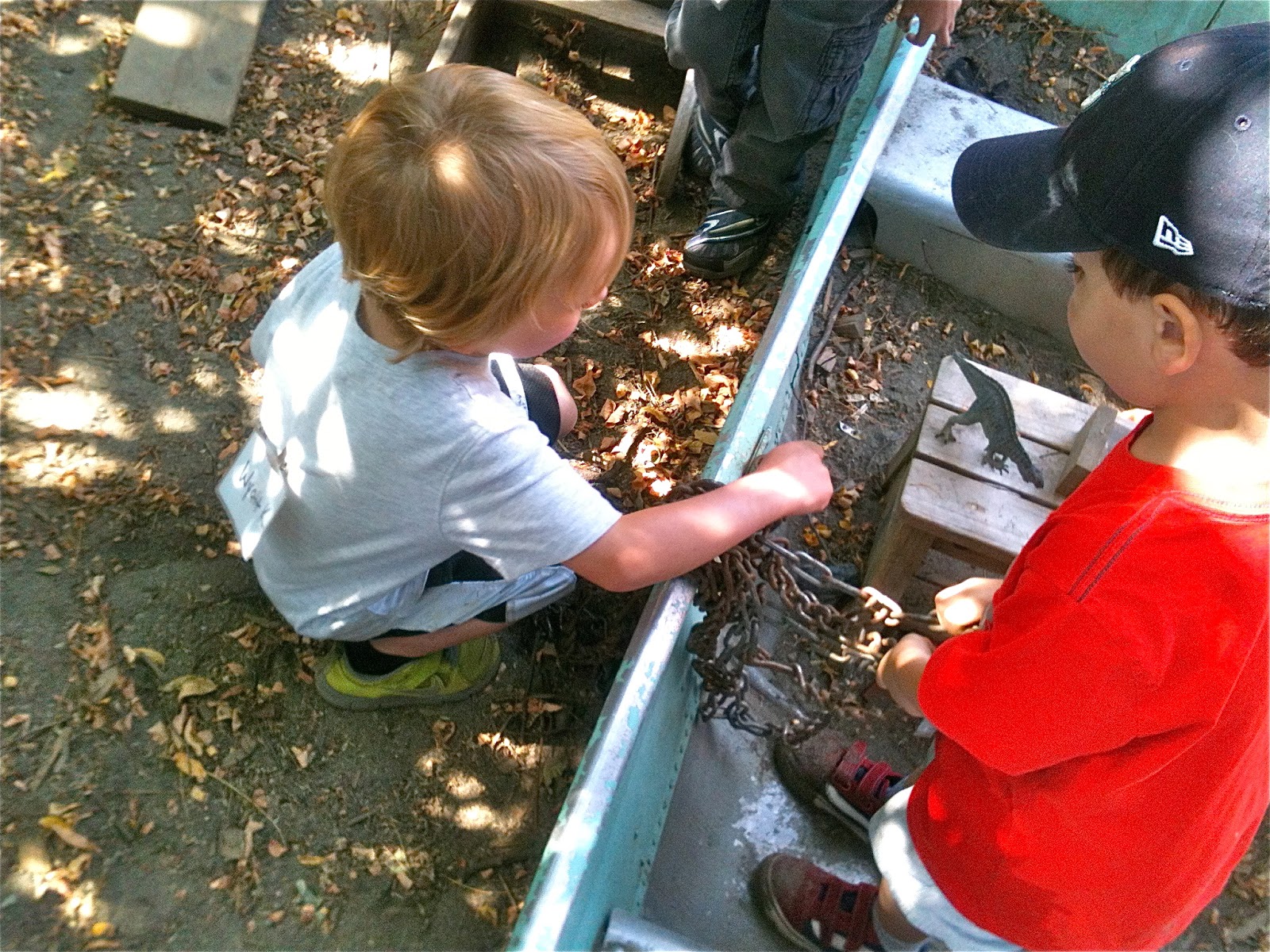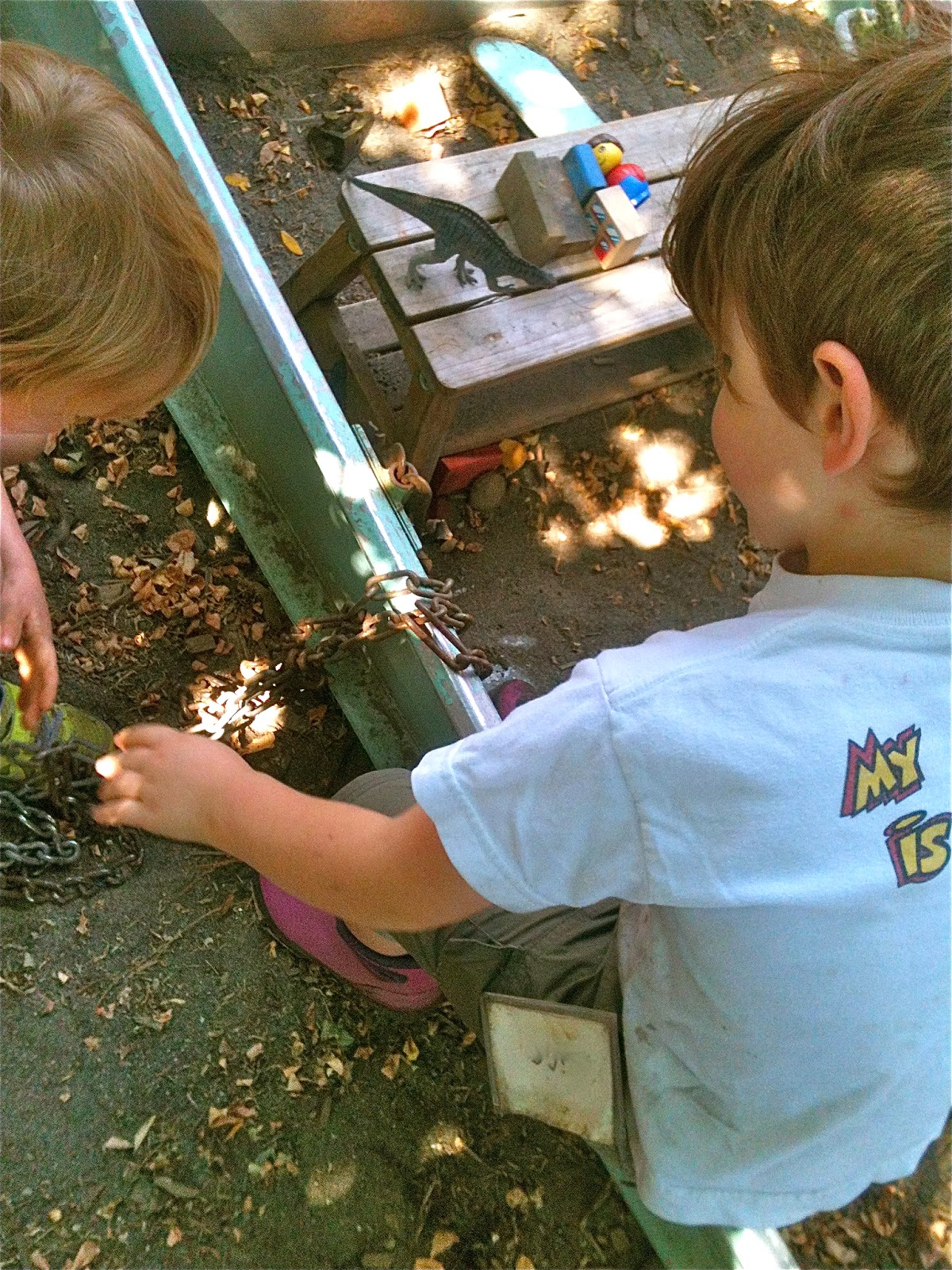 After taking his turn on the seesaw, one child started monkeying around with the heavy, unwieldy chain.