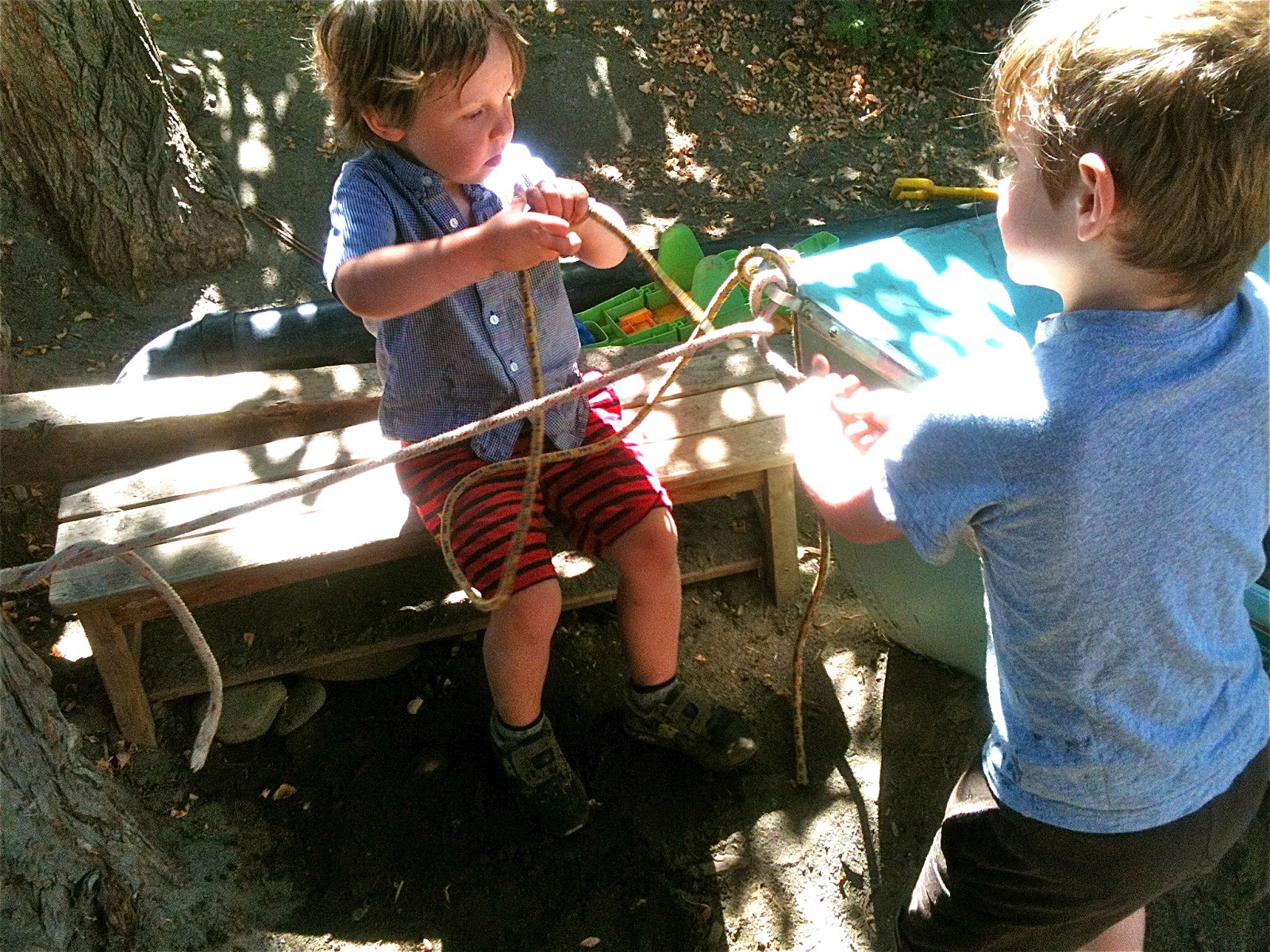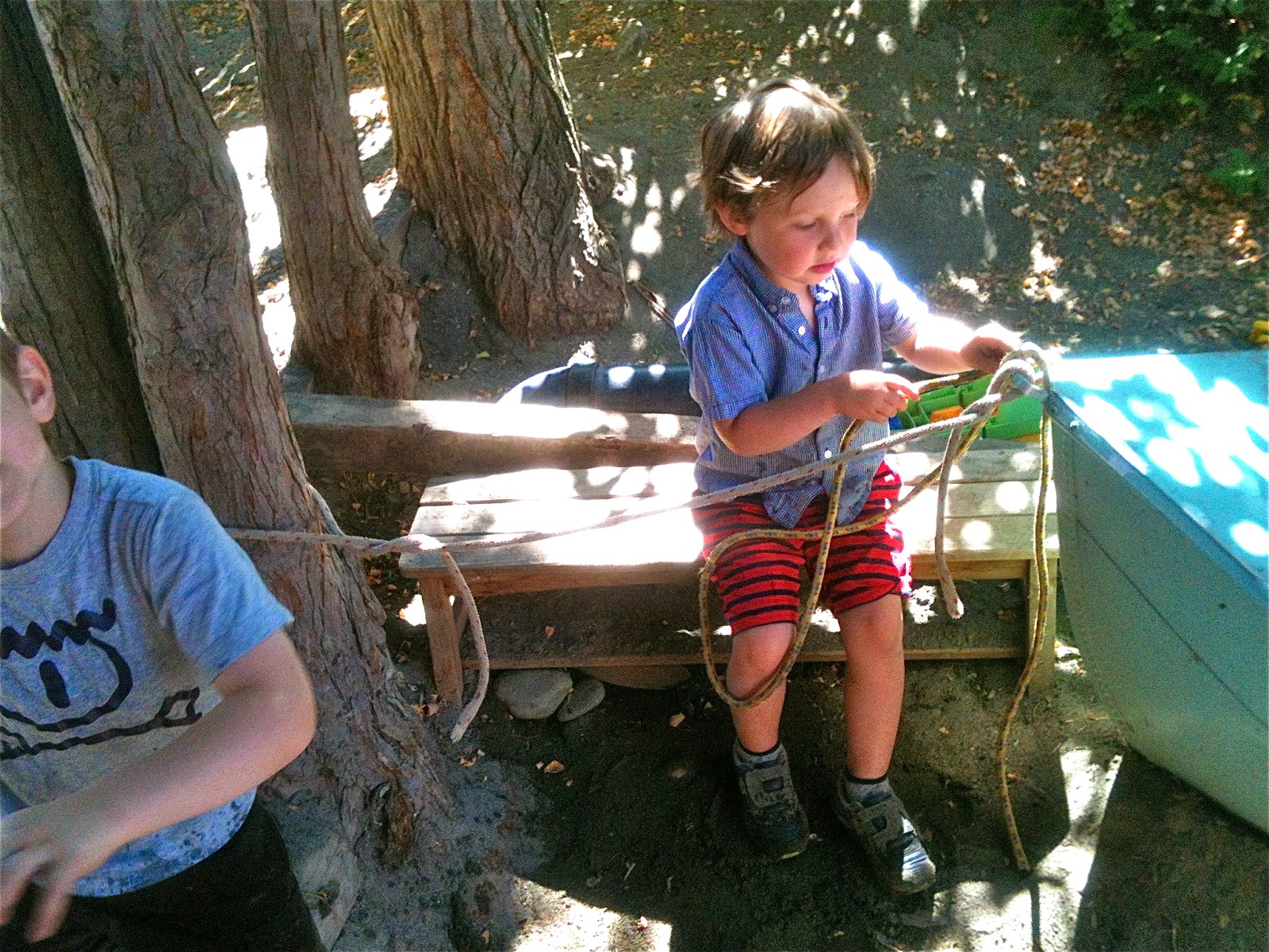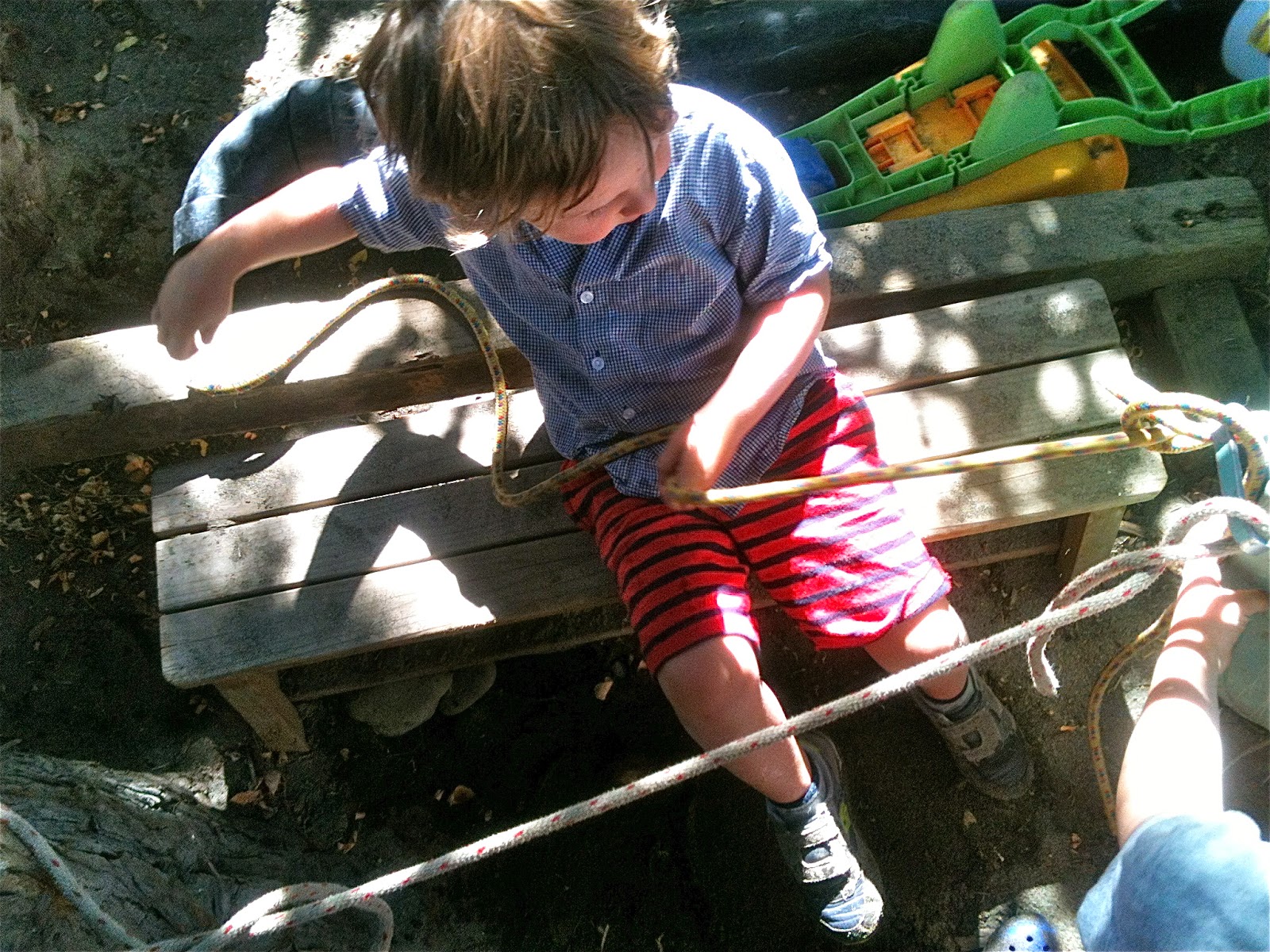 He liked that idea so much he got another plank, as yet another project involving ropes began to take shape up in the prow.