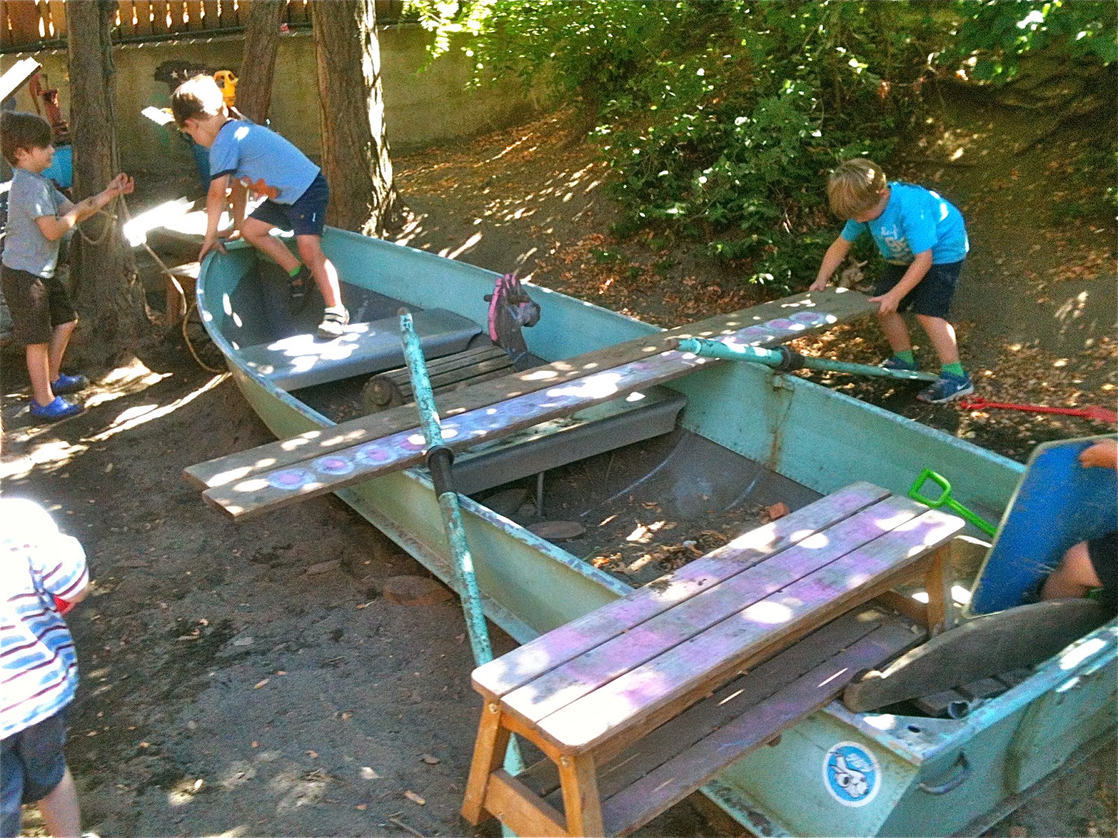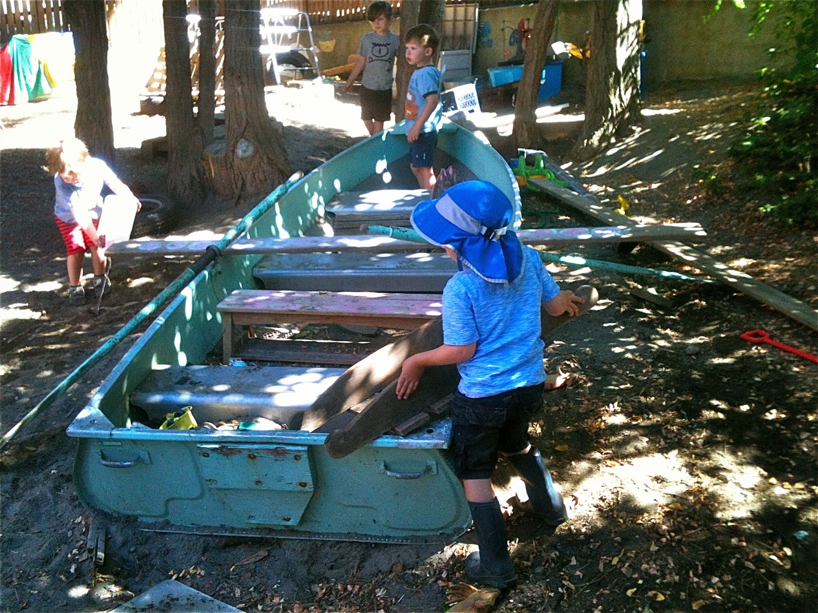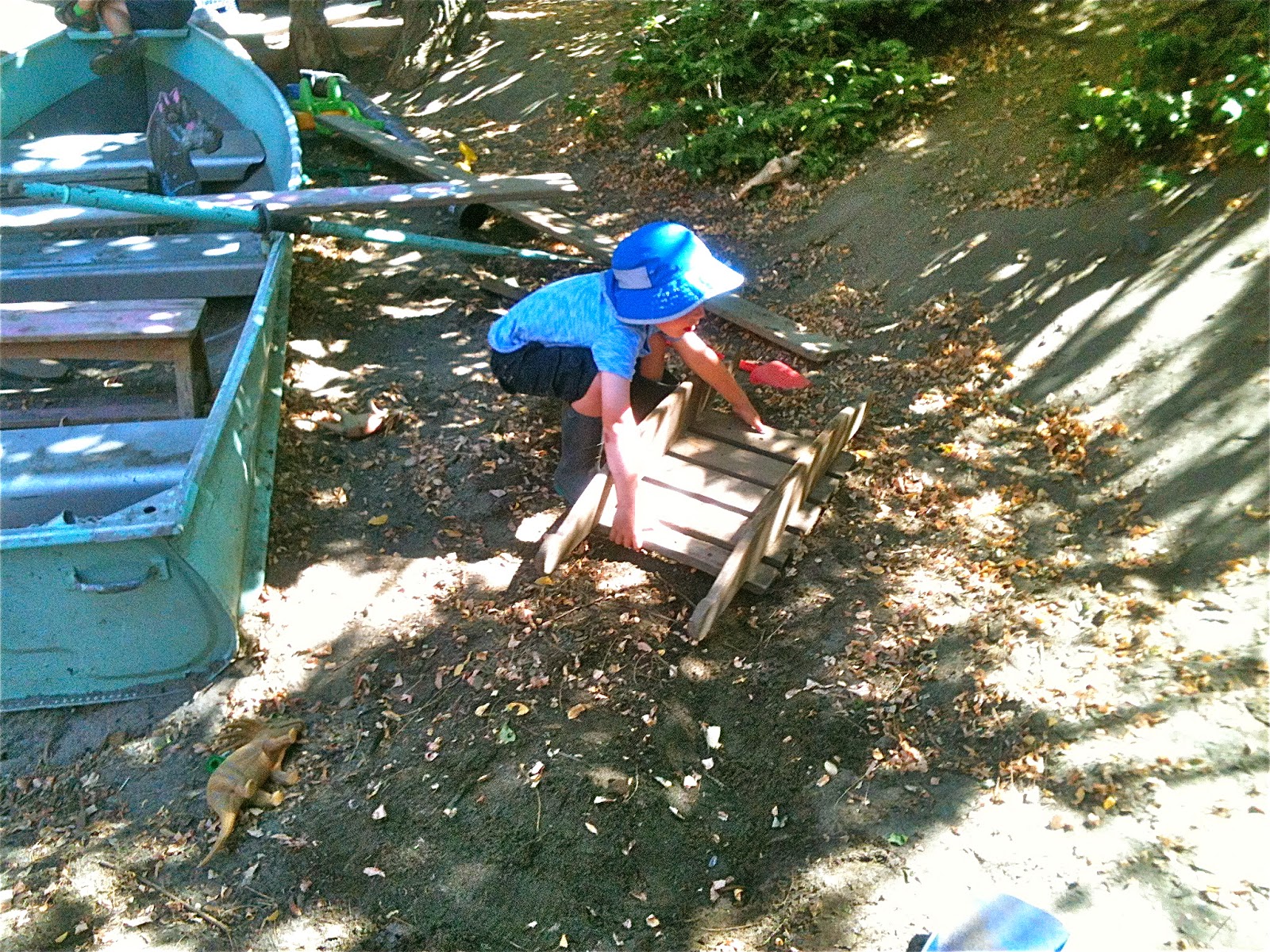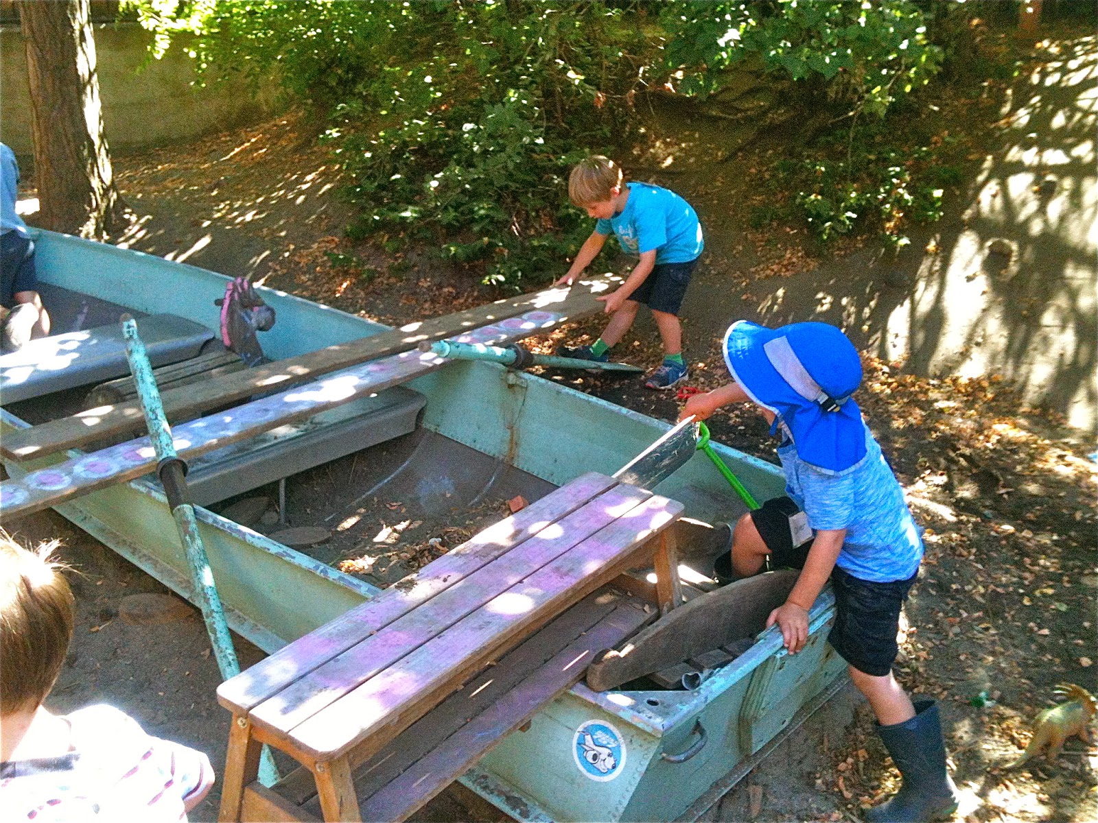 One afternoon, we dragged a plank over beside the sand pit boat and after some negotiation, made one of Woodland Park's patented seesaws by using a log as a pivot. We've been making these for three years now, a piece of institutional knowledge that continues to be passed down among the children.