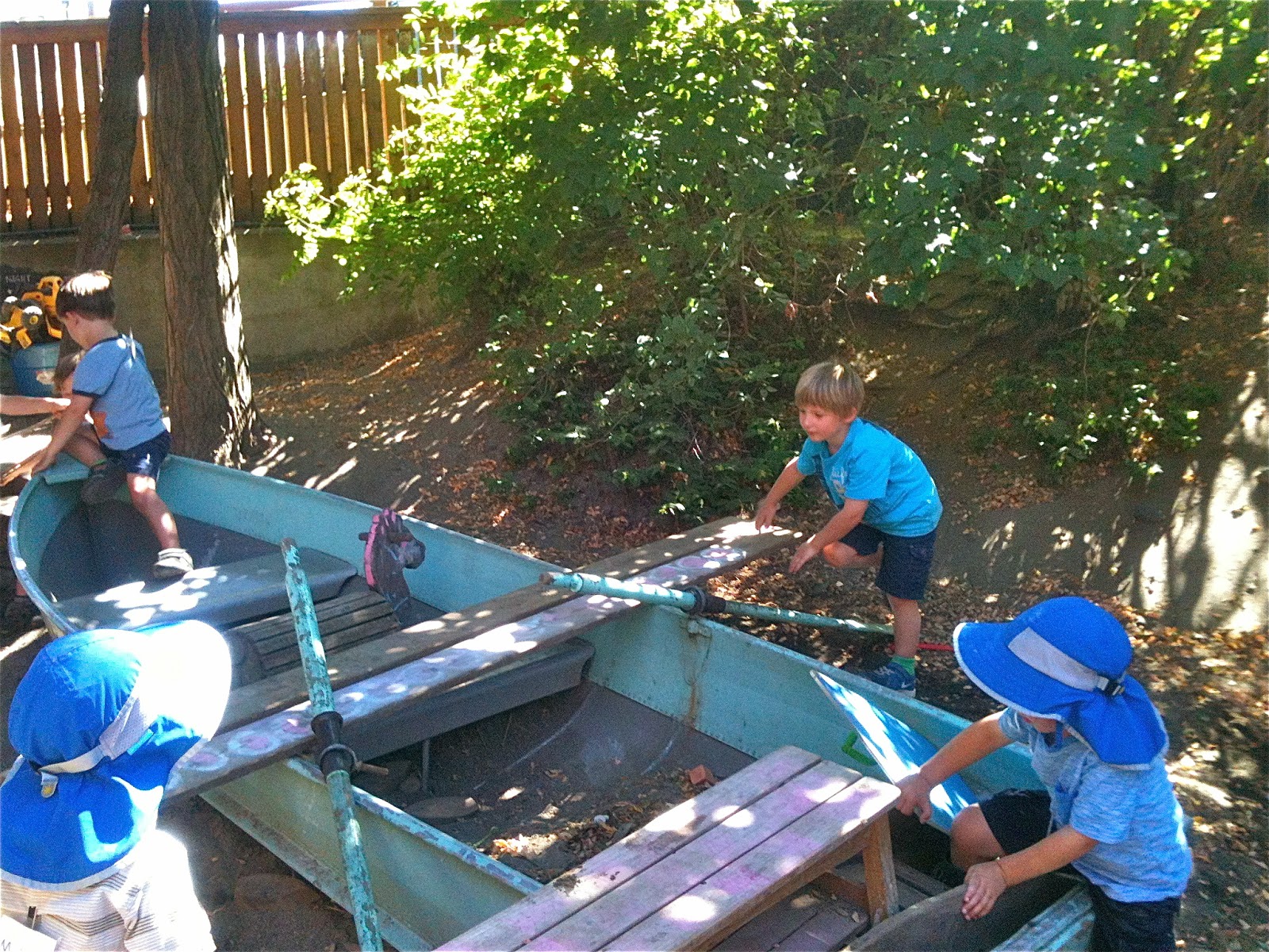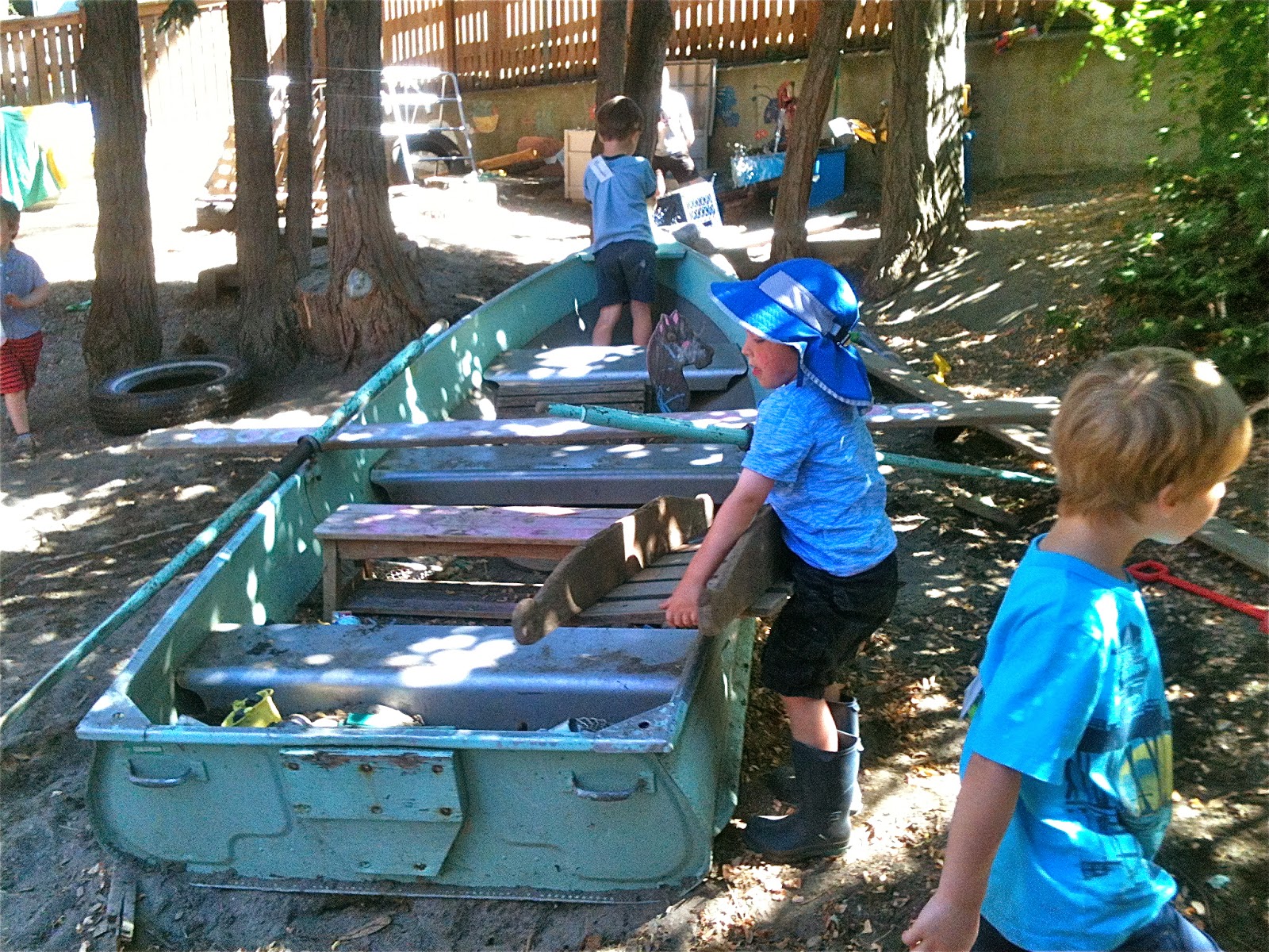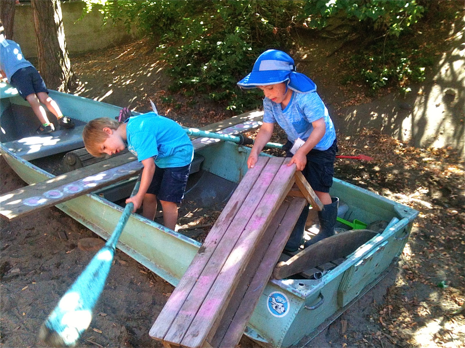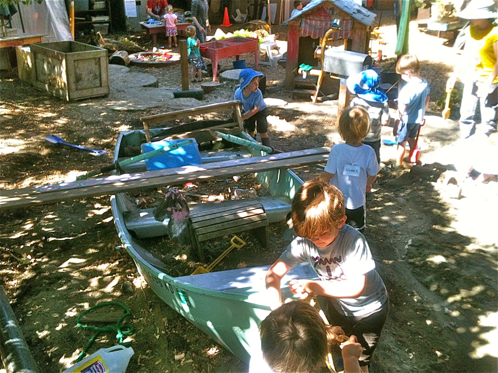 One afternoon, we dragged a plank over beside the sand pit boat and after some negotiation, made one of Woodland Park's patented seesaws by using a log as a pivot. We've been making these for three years now, a piece of institutional knowledge that continues to be passed down among the children.