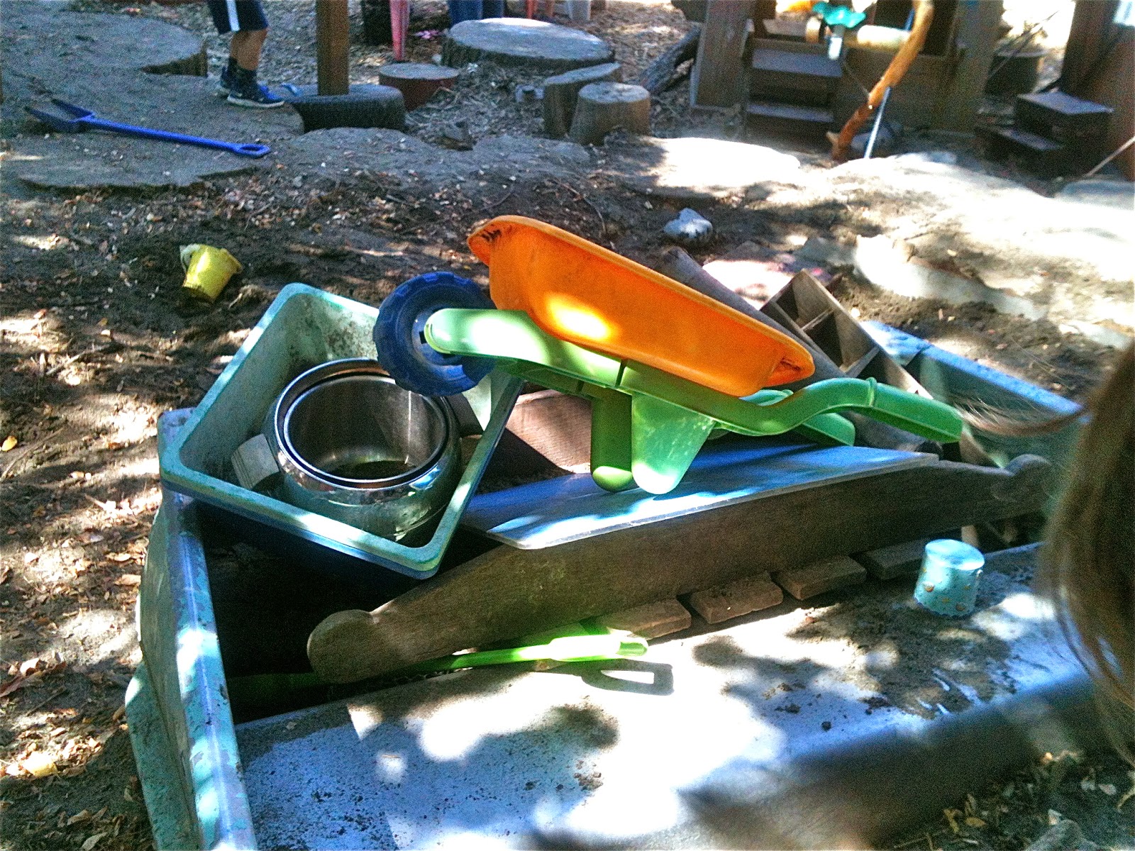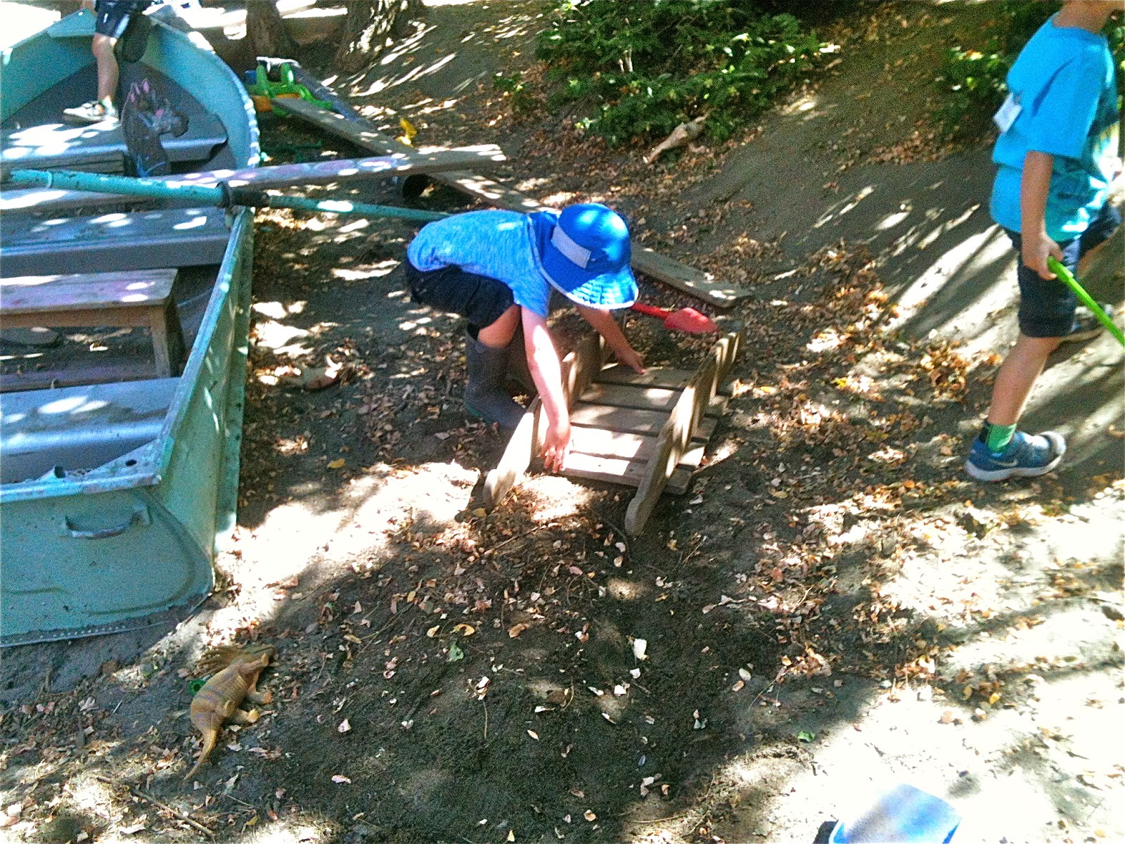 As this happened, both the water play team and gangplank crawler had moved on to other projects, leaving the field to another kid who had the idea of lifting and carrying a heavy wooden apparatus that had once been the base of a rocking horse.