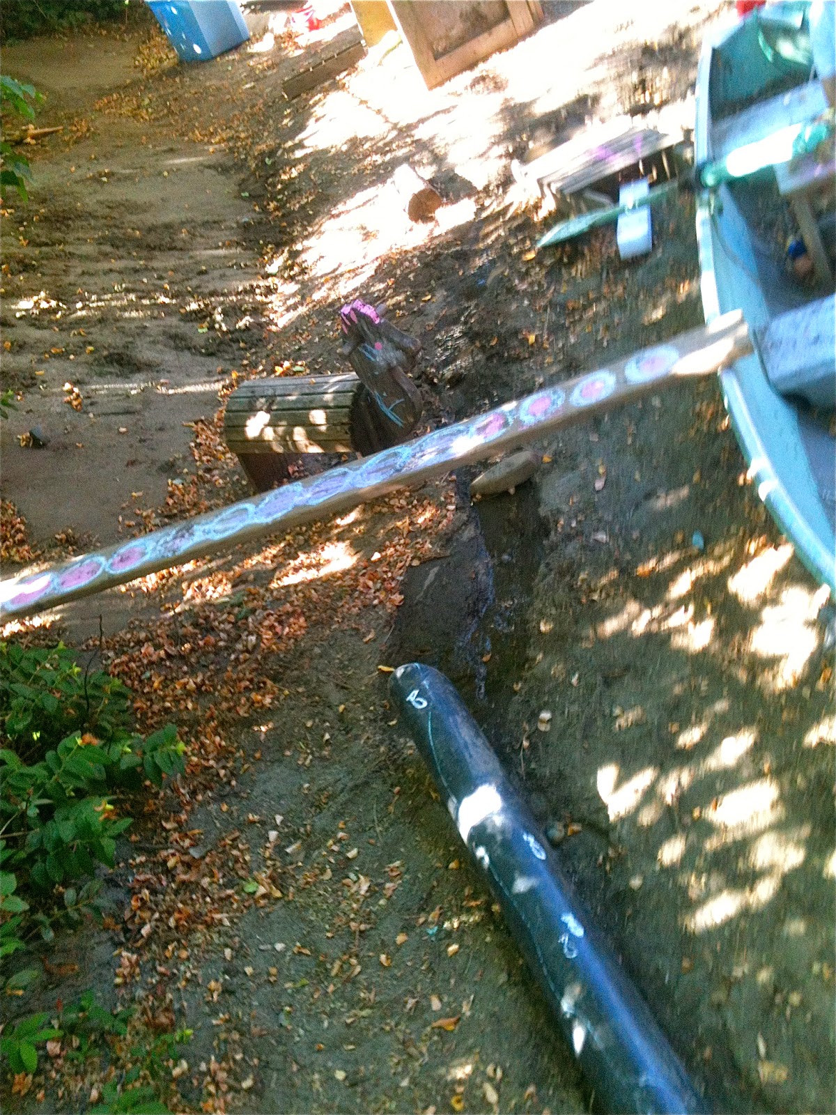 It involved not only digging, but also gutters, a length of black pipe, and a lot of conversation to get the water to go on the side of the boat opposite of where it normally flows.