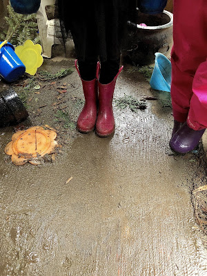 Yesterday it rained hard as we convened on the playground. Most days I try to role model playing
