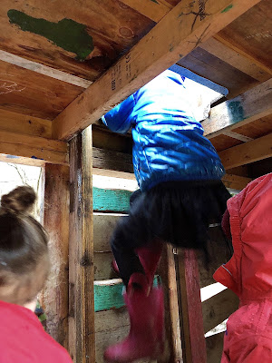 As the rest of us once more enjoyed the silliness of that word, our queen clambered the ladder to the upper deck. I was willing to follow her, but by now I was hemmed in by children either playing our game or watching our game. I can barely fit through the child-sized ladder hole so I have to ascend to the top by climbing the exterior of the structure. I was expecting at least some of the kids to follow her, clearing a pathway for me to do so as well, but not one of them budged.