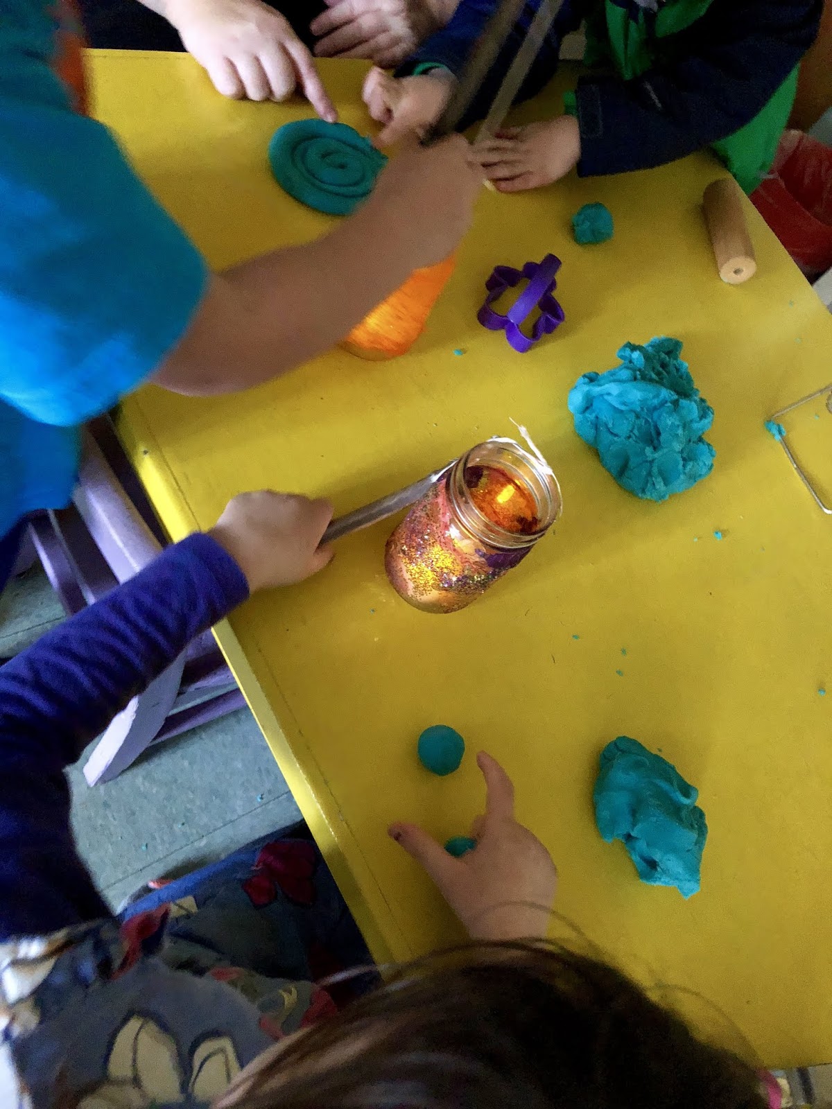 Indoors the hallways were dark and different, but the good news was that we had lanterns. We each carried one to light our way. Normally, the kids race down the hallways, but on this special day, we crept along, seeing the old familiar place in a new light, literally. There was real magic in all those children clustered together, lighting their own paths, finding their own way. The classroom itself was well-lit by the remaining sunlight, but most of the kids opted to keep their lanterns with them. We had made them from glass jars and I worried that they would get broken as we played, but they were cautious.