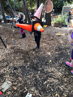There was a time when I would have felt that it was incumbent upon me, the teacher, to be proactive about gun play, but the longer I've done this job, the more I'm inclined to not see it as a problem until the children themselves see it as a problem. At first, their game was fairly self-contained, with the older boy and his group of admirers mainly shooting at one another, but at one point they trained their sites on a three-year-old boy who had previously been part of their game, but who had, overwhelmed for a moment, opted out without telling them. He had a worried look on his face, so I asked him, "Do you like that they're shooting you?" He shook his head, so I drew attention to that by saying, "He doesn't like to be shot. He has a worried look on his face."