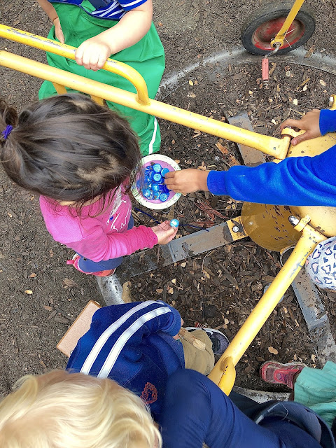 I knew that we were going to be spreading a new layer of wood chips over the surface of our junkyard playground at some point this summer, but it surprised me when I arrived at school yesterday. My first emotion was one of disappointment, because while it does freshen the place up, giving it a pleasing scent of cedar, I knew that it had also buried a lot of our smaller bits and baubles, things that might not re-surface for months, if ever. On second blush, however, I remembered that the kids have been kicking up quite a cloud of unpleasant dust here in the dog days, something with which this new layer of chips would definitely help.